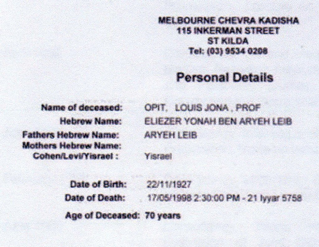 Lou Opit was born in Curramulka in South Australia. His father Leon Opit(z) was a general practitioner in Curramulka and later Torrensville and a respected member of the Adelaide Jewish community.