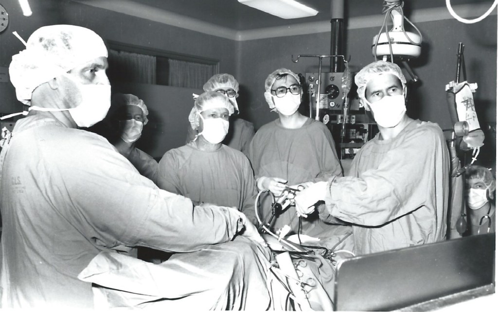 Russell Stitz demonstrating a laparoscopic procedure about 1993.