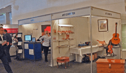 I arranged the stand to include most of the passions I had enjoyed over the ten years since retirement – writing, cabinet-making, stringed instrument-making and water-colour painting. At the time I was halfway through constructing a Spanish Guitar and so continued working on it in the booth using my portable vice.