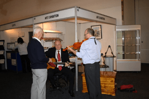 Later in the day, two musically-inclined surgeons from interstate asked if they could play a duet with the violin and steel-stringed guitar on display. Fortuitously, one of the participants was carrying his computer and so they downloaded the music and I held the computer in front of them as a small crowd of surgeons gathered to listen. I forget what they played but it was inspiring and enjoyable. A marvellous thing.