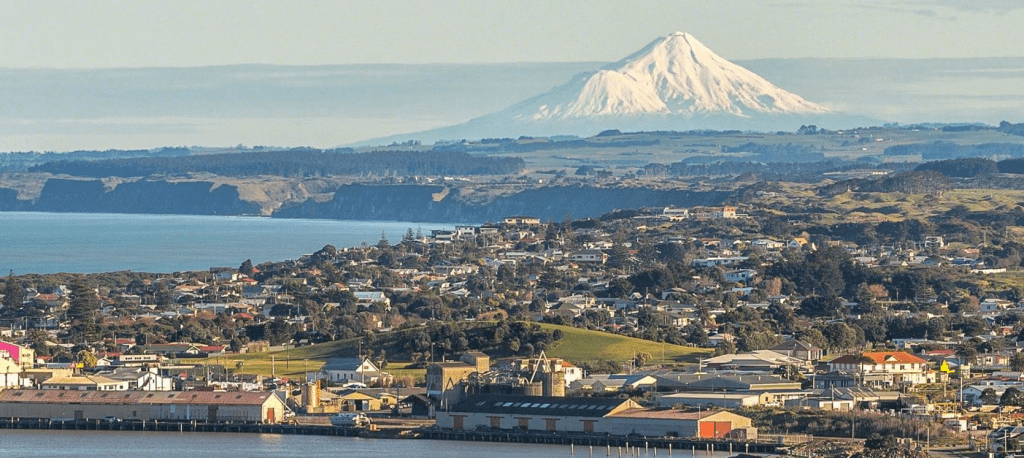 Present day Whanganui with Mt. Ruapehu, North Island’s highest peak, in the distance