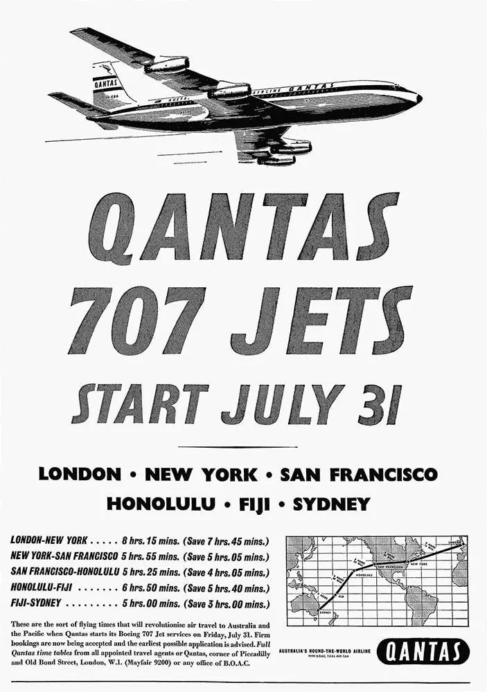 The following day the Lockheed Super Constellation left for Fiji where I boarded a Boeing 707 bound for Hawaii.