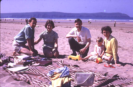With Trevor, Marilyn and Cheryl Pickering, Woolacoombe Beach, North Devon