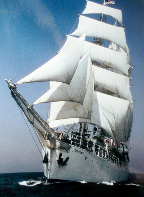 The Amorina had been constructed in 1934 in Gothenburg, originally designed as a Swedish lightship for the Baltic Sea, but had been refitted as a square-rigged barquentine in Portugal in 1983, with three steel masts, the tallest at 34 metres (112 ft) and increased accommodation belowdecks. She also had an icebreaker bow and riveted hull plates six inches thick so was a solid craft.