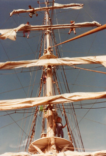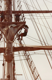The hesitant sailor Celia aloft unfurling the top gallant