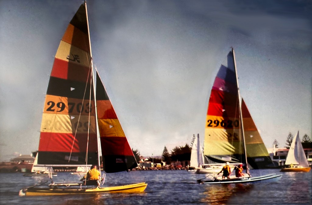 Bill Hobbs and I were becoming restless with our sailing and decided to seek greener pastures in the form of 16-foot Hobie catamarans. I approached the Commodore of Brighton and Seacliff, George Doughty, regarding our sailing catamarans at Brighton.