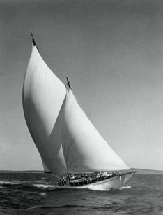 Early sea trials found her rather tender to handle, perhaps because ‘Poppa’ Searle had forgotten that 21-footers were accustomed to having six men seated on the weather rail. To correct this fault, some half a ton of lead ballast was laid alongside the keel inside the hull – lead which I removed shortly after purchase in order to get more speed out of her.
