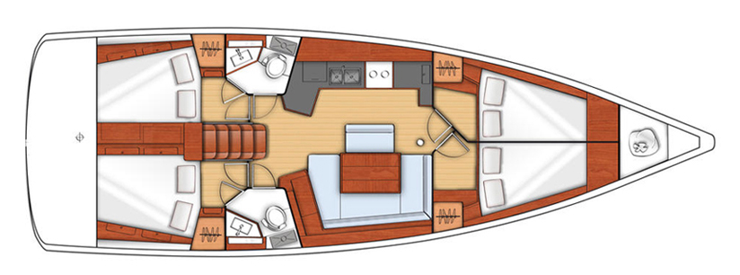 Layout and interior of Beneteau Oceanis 45