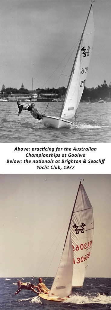 In 1977, the Australian 420 Championships were scheduled to be held at Brighton and Seacliff in January and our skills had improved to the stage we thought it would be a bit of fun to enter. Perhaps it would be fair to say that Anne, my crew for the series, did not quite share my enthusiasm.