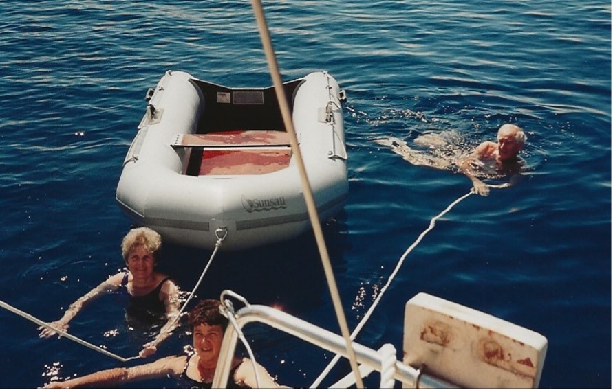 We set sail later in the morning and found a heavy swell had developed but the wind had dropped. It was hot and humid, so we all went for a swim. The amazing feature of the Aegean sea, we found, was its high salt content, which allowed us to float without any effort, much like swimming in the Dead Sea.
